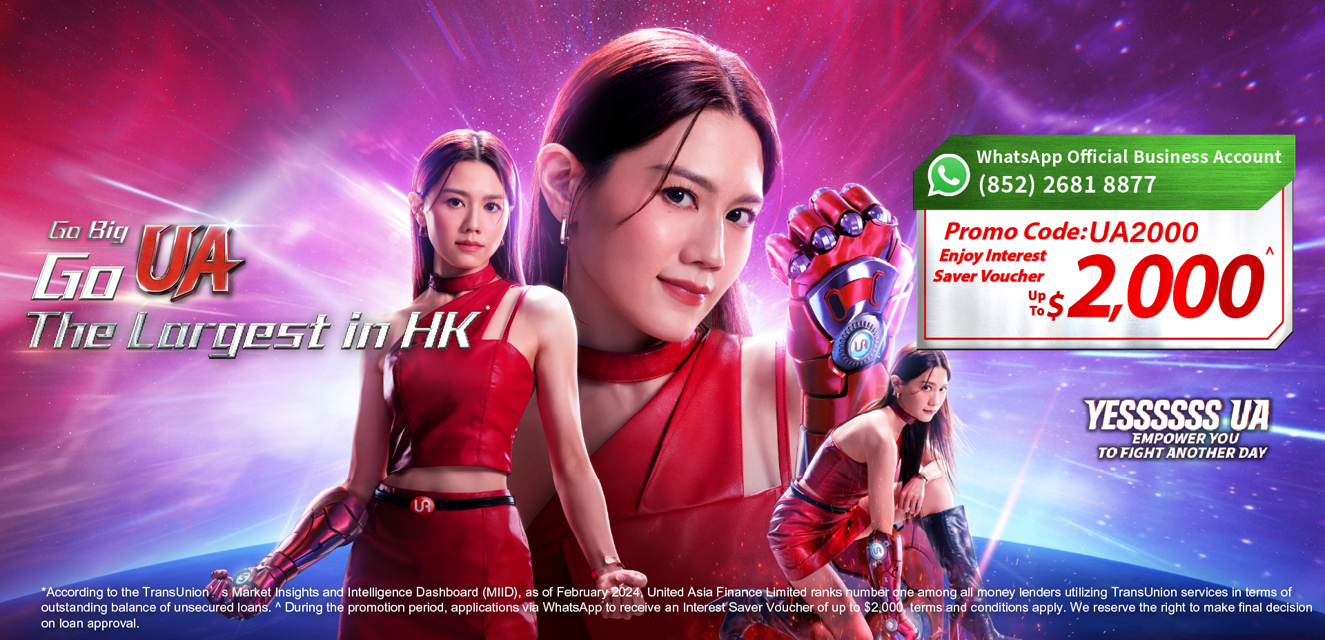 Offering different kinds of loan services! UA Finance provides instant cash transfer by FPS including Sat & Sun. You can apply loan ANYTIME and ANYWHERE!