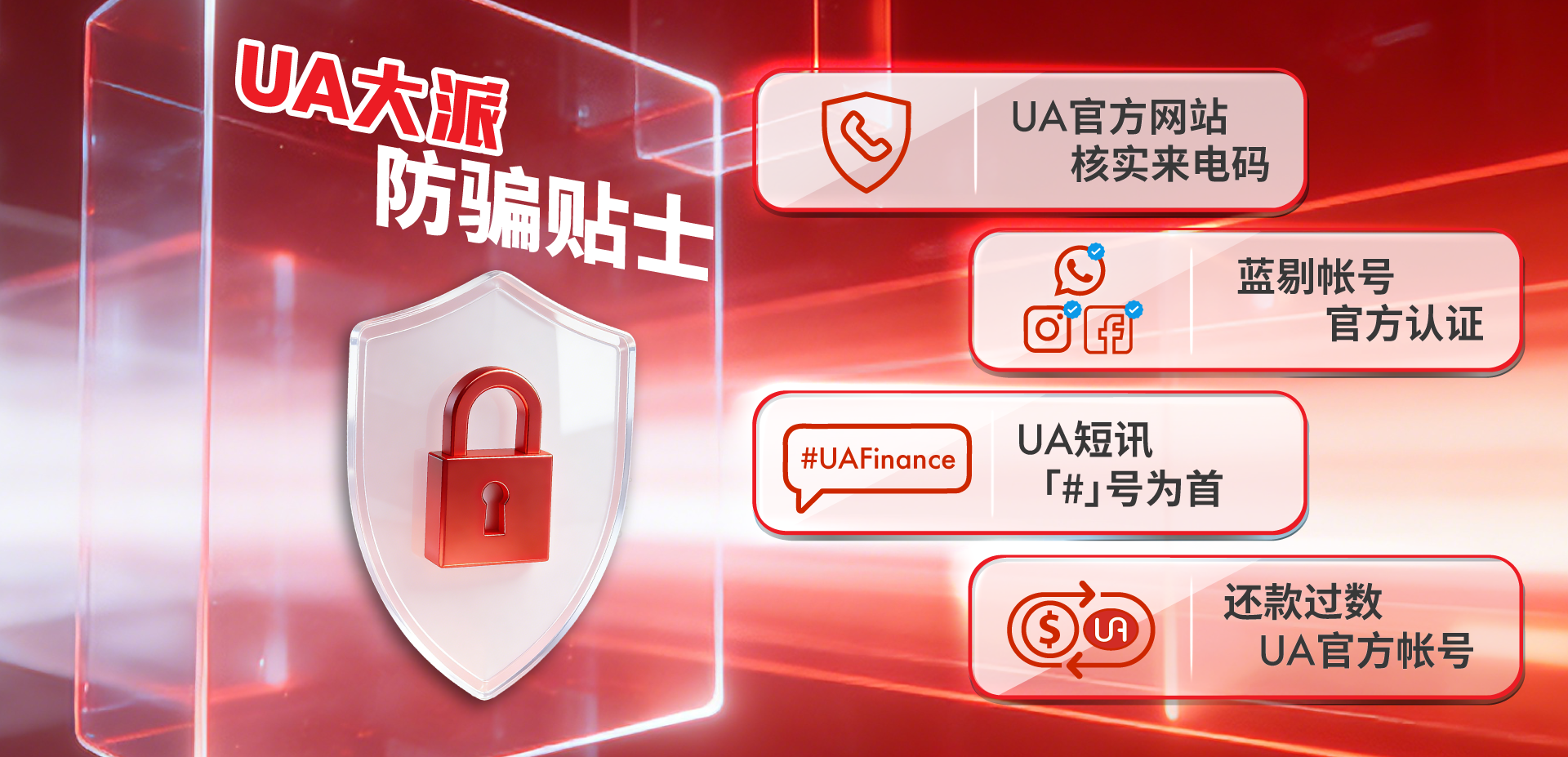 短讯「#」号为首留意UA短讯发送人是否以「#」号为首。若收到不明短讯,切勿回覆或点击任何连结。