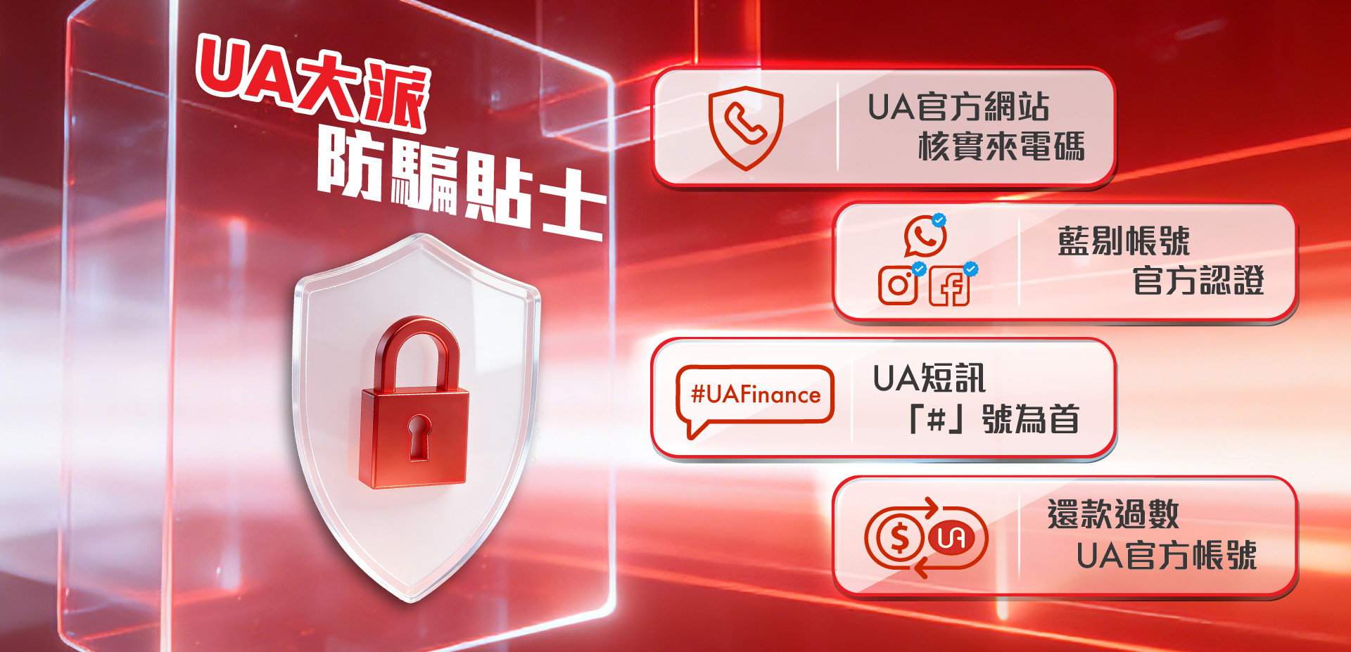短訊「#」號為首留意UA短訊發送人是否以「#」號為首。若收到不明短訊,切勿回覆或點擊任何連結。